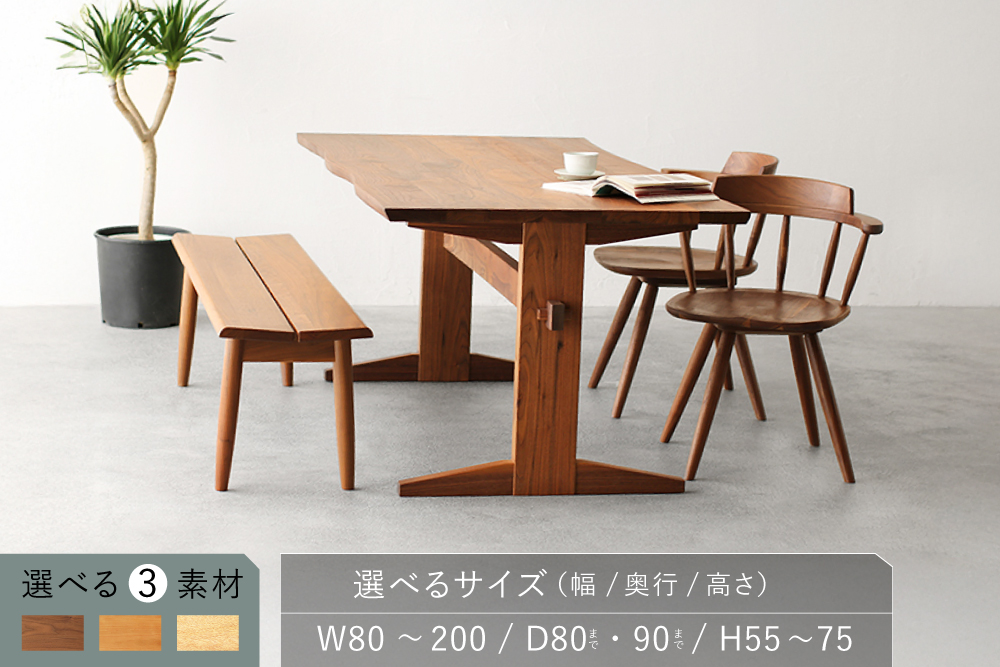 耳付きウォールナット材ダイニングテーブル 幅150cm(1101)
