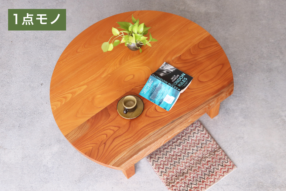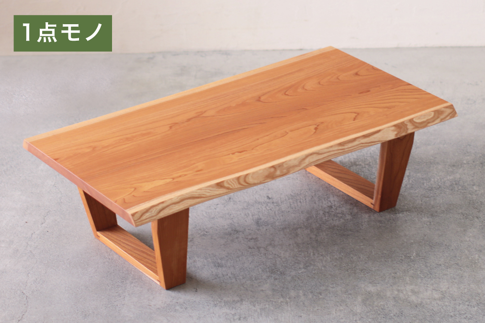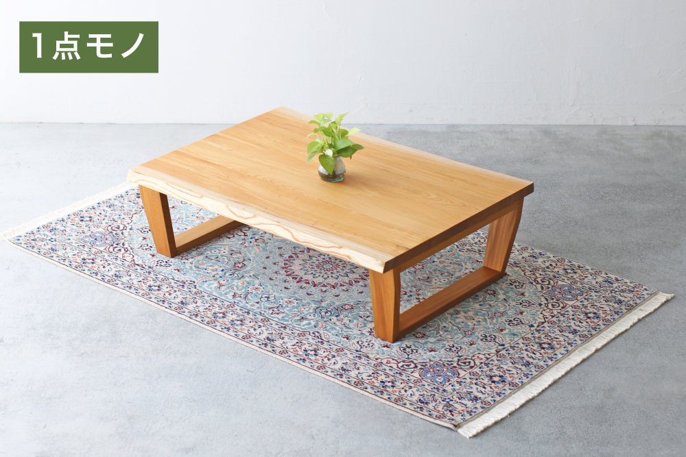 耳付きケヤキ材変形リビングテーブル 幅105cm(3103)