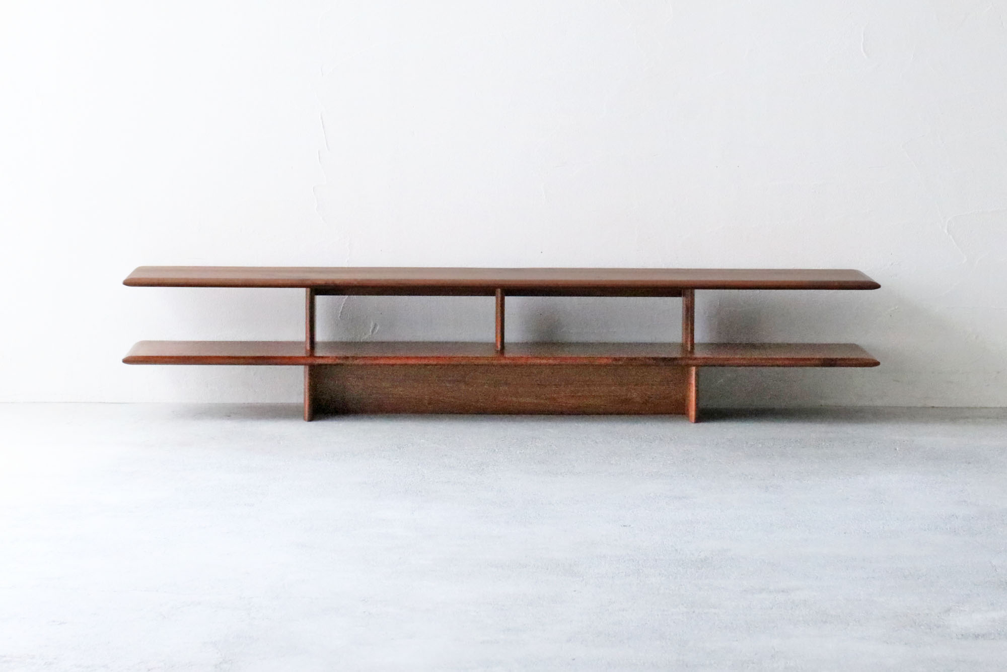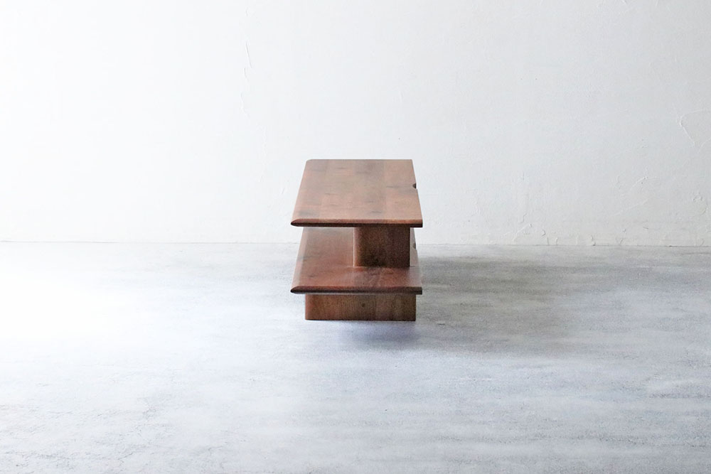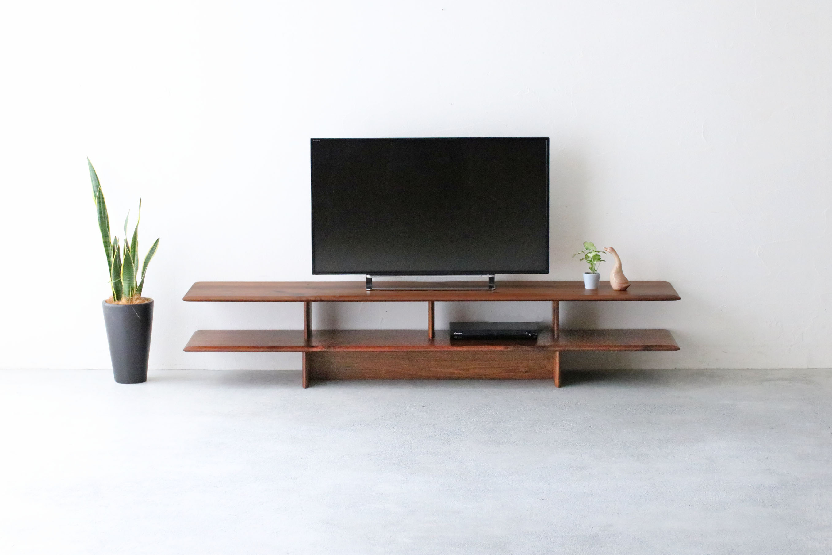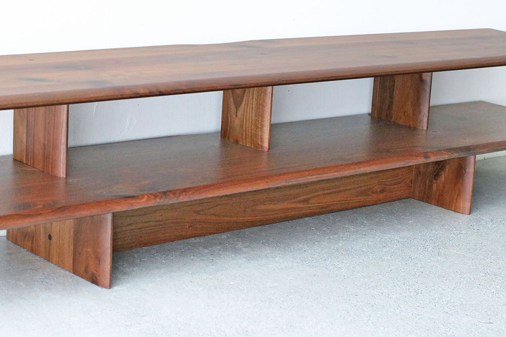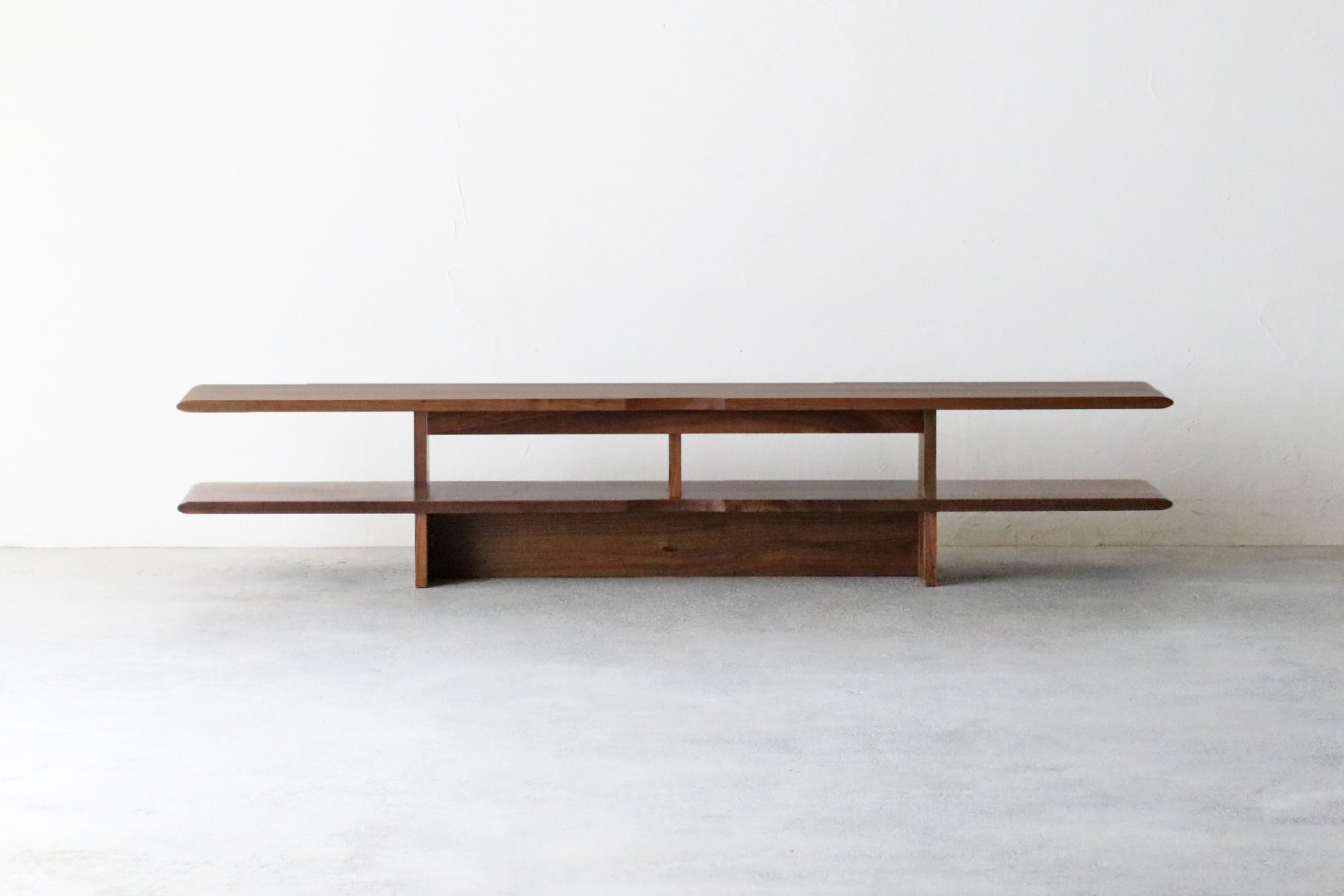 25mmの無垢材の板にシャープな面加工を施したシンプルなテレビボード。