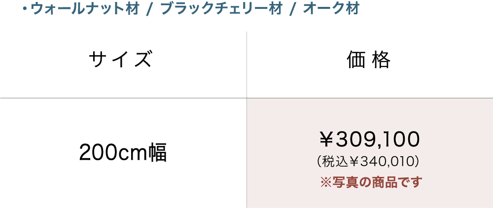 | 素 材 | ウォールナット材 引き出し内部:桐材 ※3種類からお選びいただけます。 ウォールナット材・ブラックチェリー材・オーク材 |