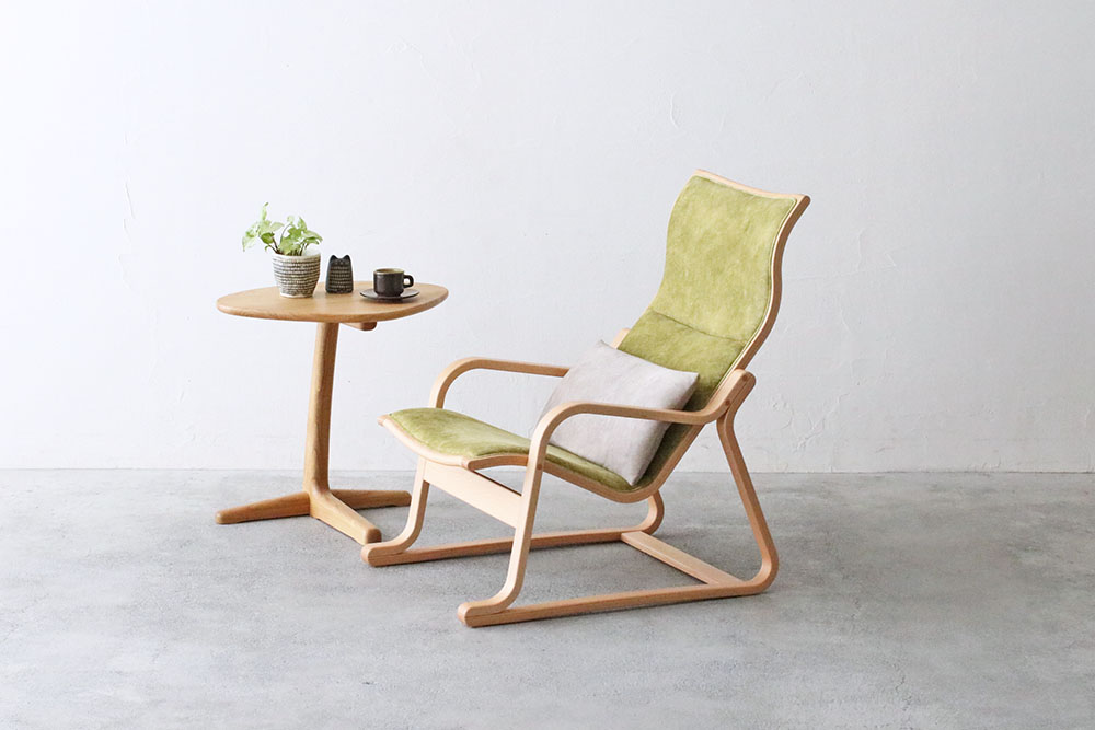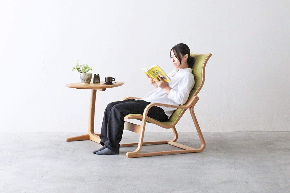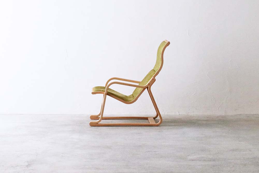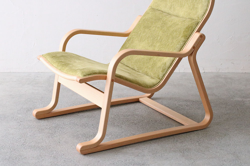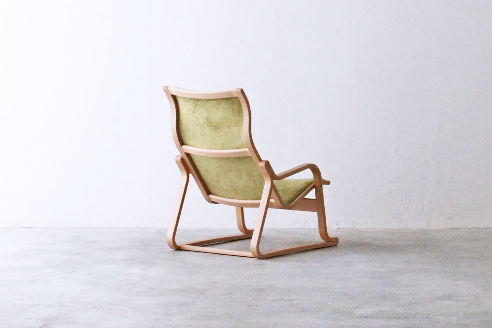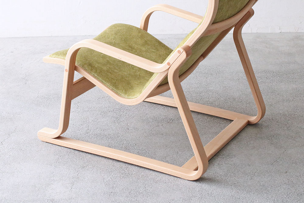 成型合板の技術を駆使したゆるやかな曲線のフレームは、身体に馴染みしっかりと頭まで支えてくれます。