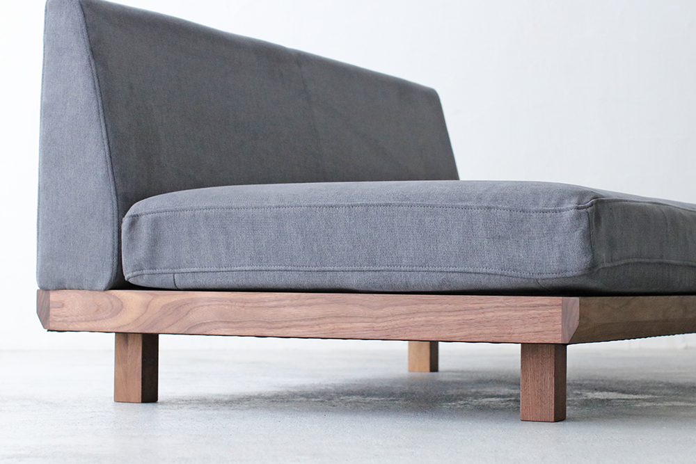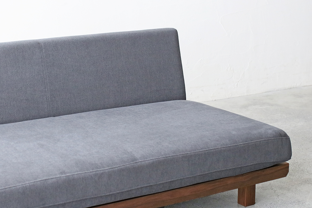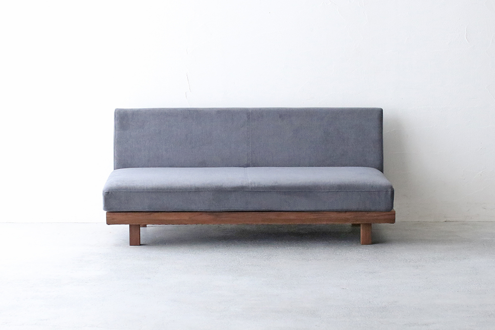 シンプルなアームレスのロースタイルソファ。背クッションがなく、座面は奥行72cmと広々としていてゆったりと座ることができます。暖かみのある天然木のフレームで、背面の高さも62cmと低めなのでお部屋が広くスッキリとみえます。