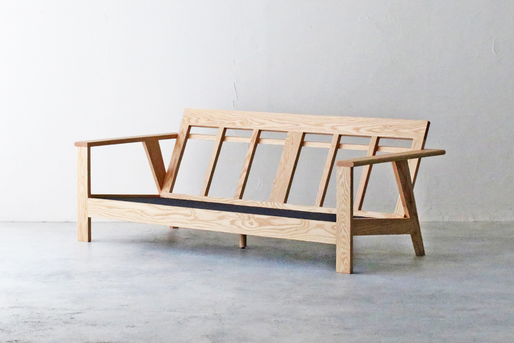 フレームの直線のラインがシャープなデザインのソファ。