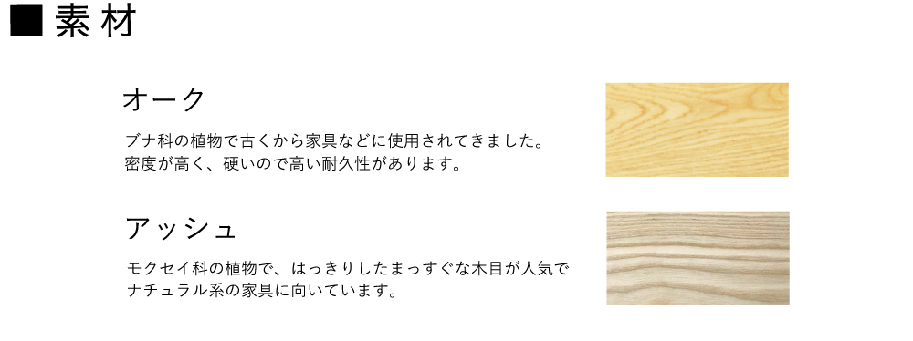 | 素 材 | オーク材 ※2種類からお選びいただけます。 オーク材・アッシュ材 |