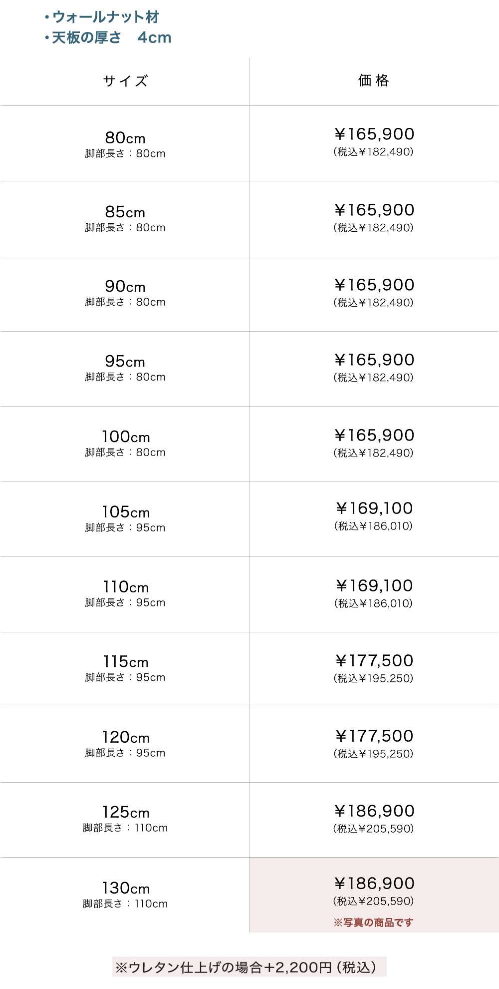 | 仕 様 | 天板・脚:ウォールナット無垢材 |