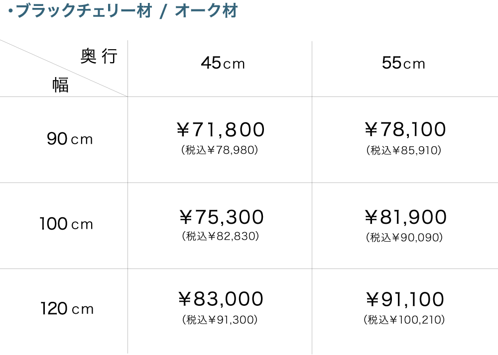| 仕 様 | オーク無垢材 脚:黒色スチール脚 |