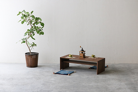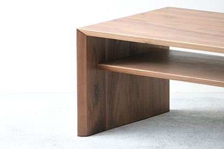 高級ウォールナット無垢材のオイル仕上げのリビングテーブル。便利な棚付の完成品で丈夫です。 幅が1100mmとコンパクトな設計となっておりますので少し狭い場所でも配置が可能です。
