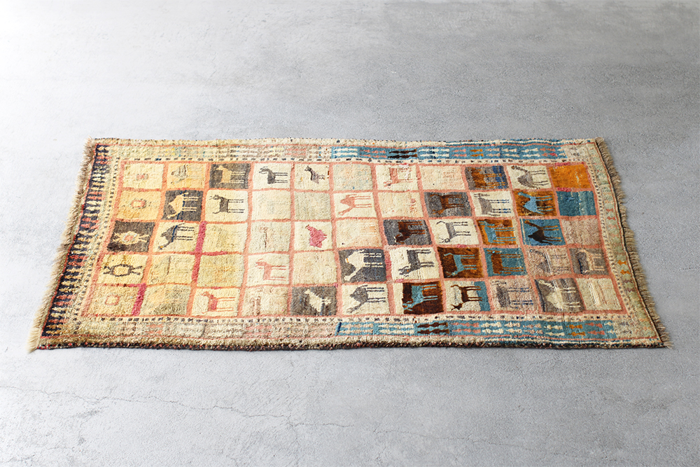 ギャッベは、イランの遊牧民が一枚一枚手織りした絨毯です。こちらの商品は1点モノで、OLD商品となります。