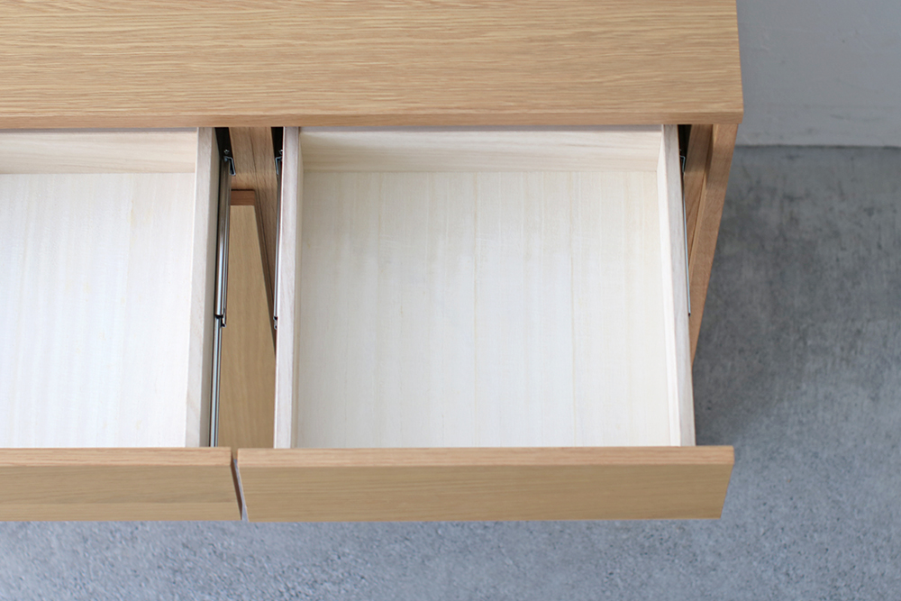 | 仕 様 | 天板・側板・前板:オーク突板材 引き出し内部:桐材 |