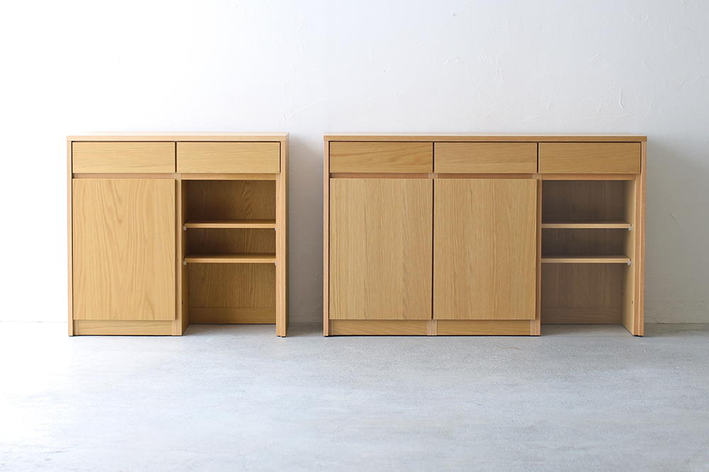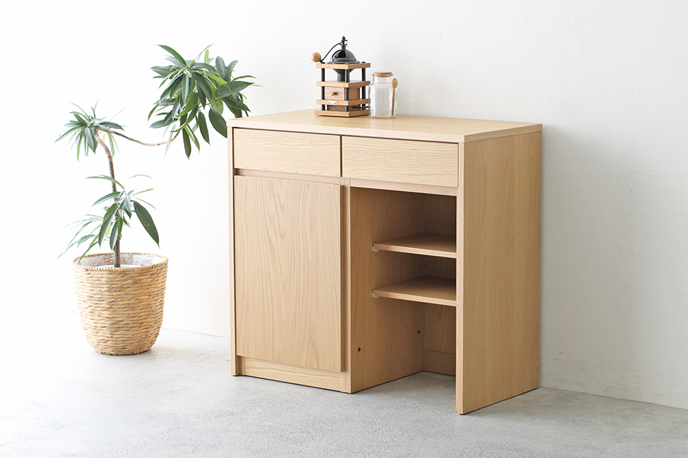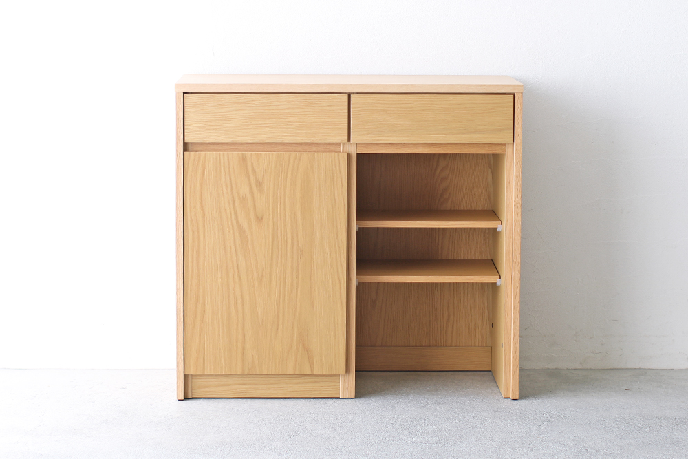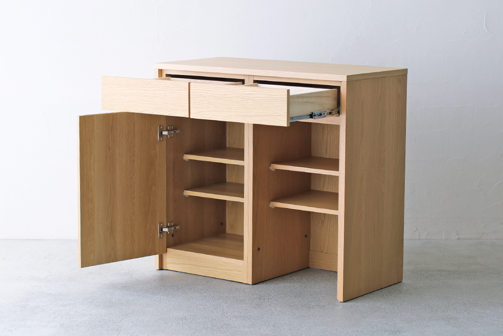 | 仕 様 | 天板・側板・前板:オーク突板材 引き出し内部:桐材 |