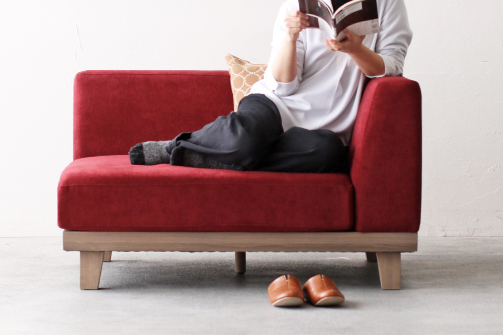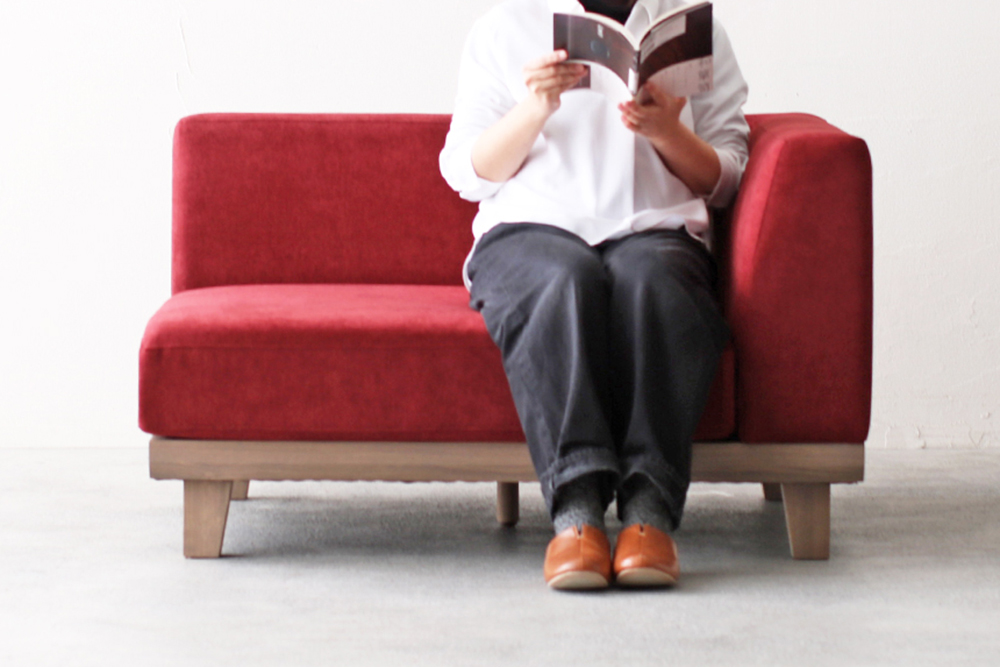 片側にのみ肘掛けを設けることで、横幅を有効的に使え、座れる面積が広くなっています。お子様やペットと並んでお座りいただけます。