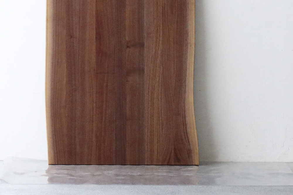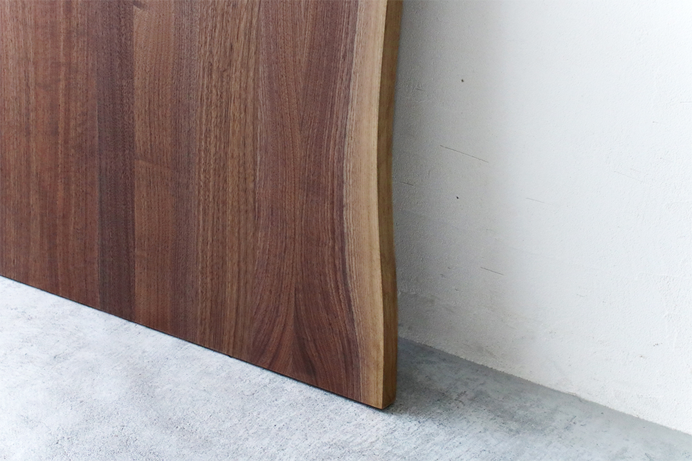 耳付きウォールナット材の天板は、厚さ3.3cmですがスタイリッシュな安定感があります。