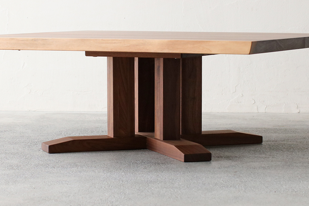 耳付きのウォールナット材を使用した重厚感あるリビングテーブルです。