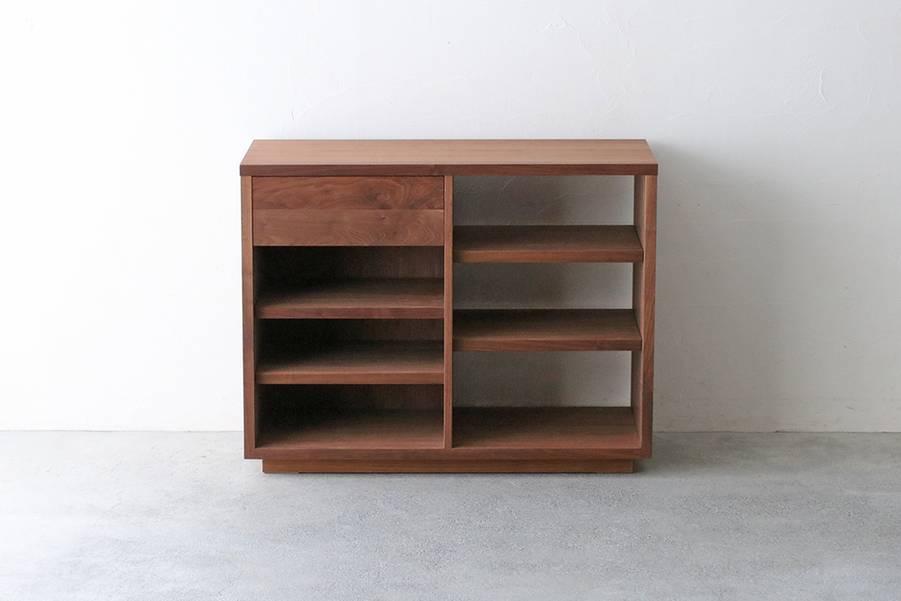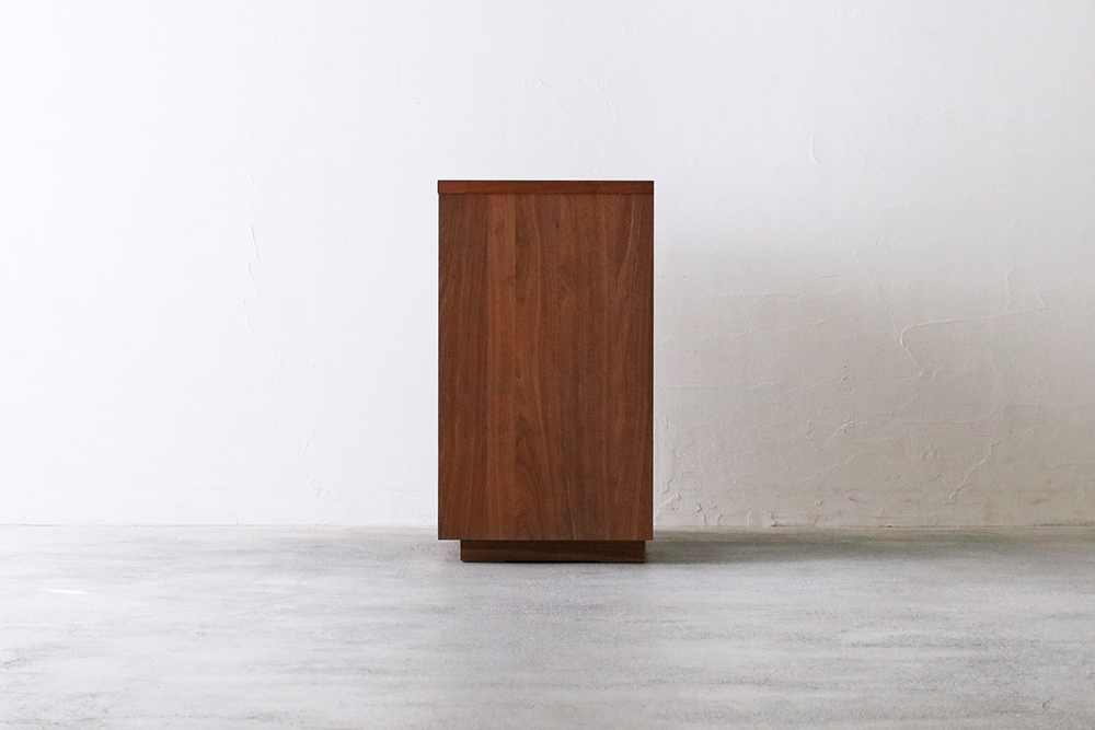 | 仕 様 | 前板:ウォールナット無垢材 天板・側板:ウォールナット突板材 引き出し内部:桐材 |