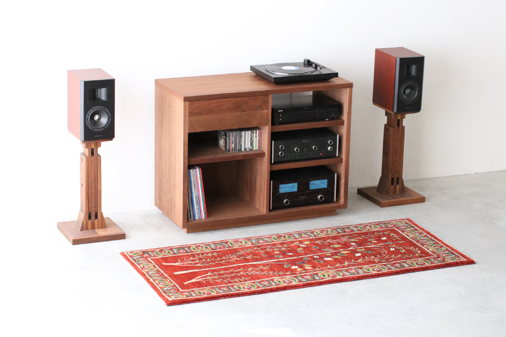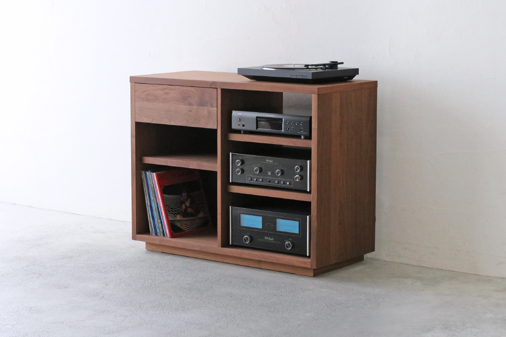 ウォールナット材のシンプルオーディオ収納。