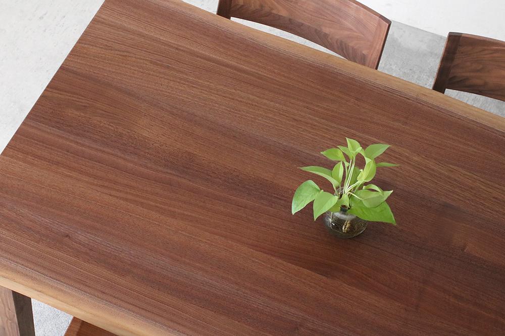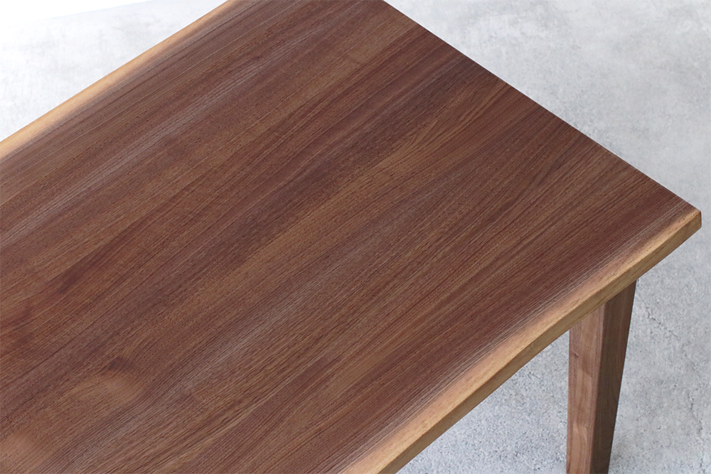 耳付きウォールナット材の天板は、厚さ3.3cmですがスタイリッシュな安定感があります。
