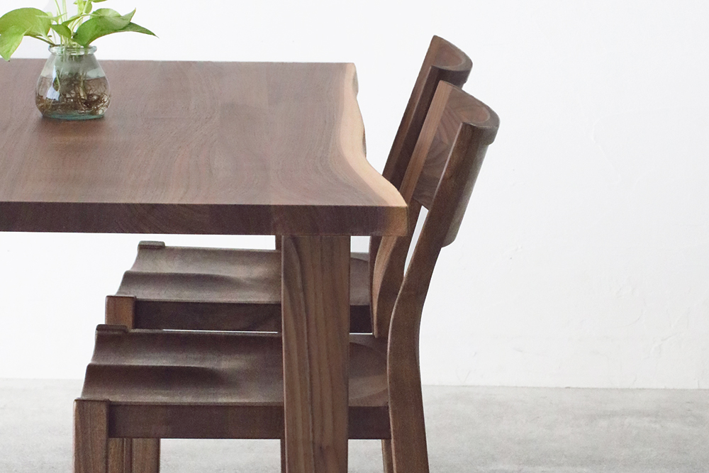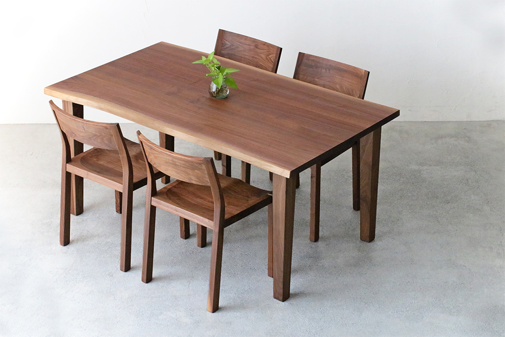 | 仕 様 | 天板:耳付きウォールナット無垢材 脚:7.5cm角ウォールナット無垢材 |