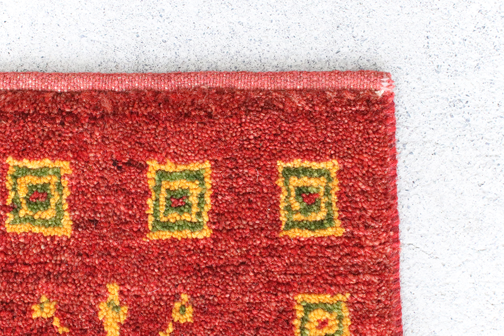 ギャッベは、イランの遊牧民が一枚一枚手織りした絨毯なので一点物となります。手織りの商品ですので、少々のサイズ違いや、ゆがみがございます。
