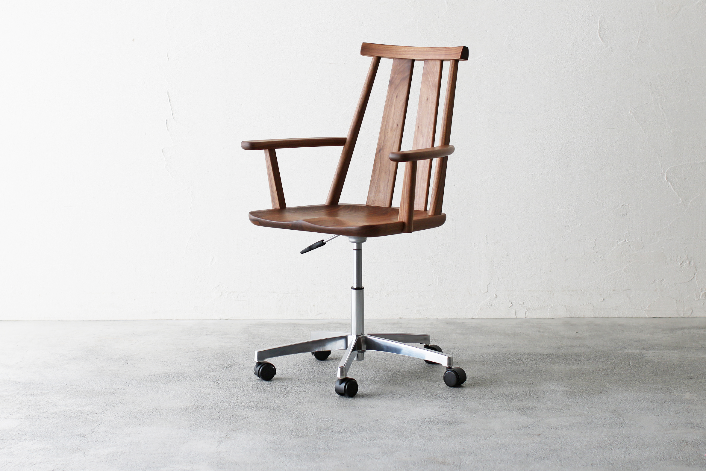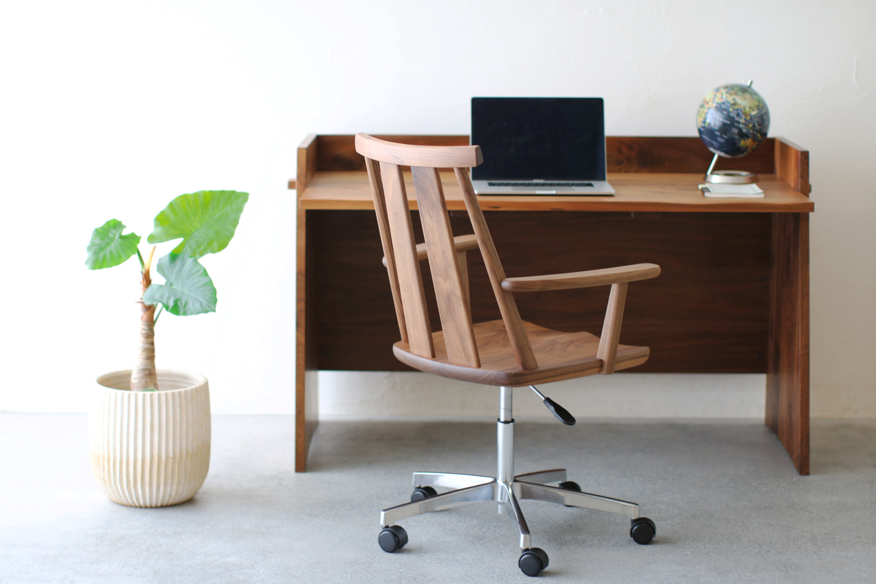 普通の回転チェアでは物足りない方へ、無垢材の質感を堪能できる本格的の昇降式・回転キャスター付のデスクチェアです。