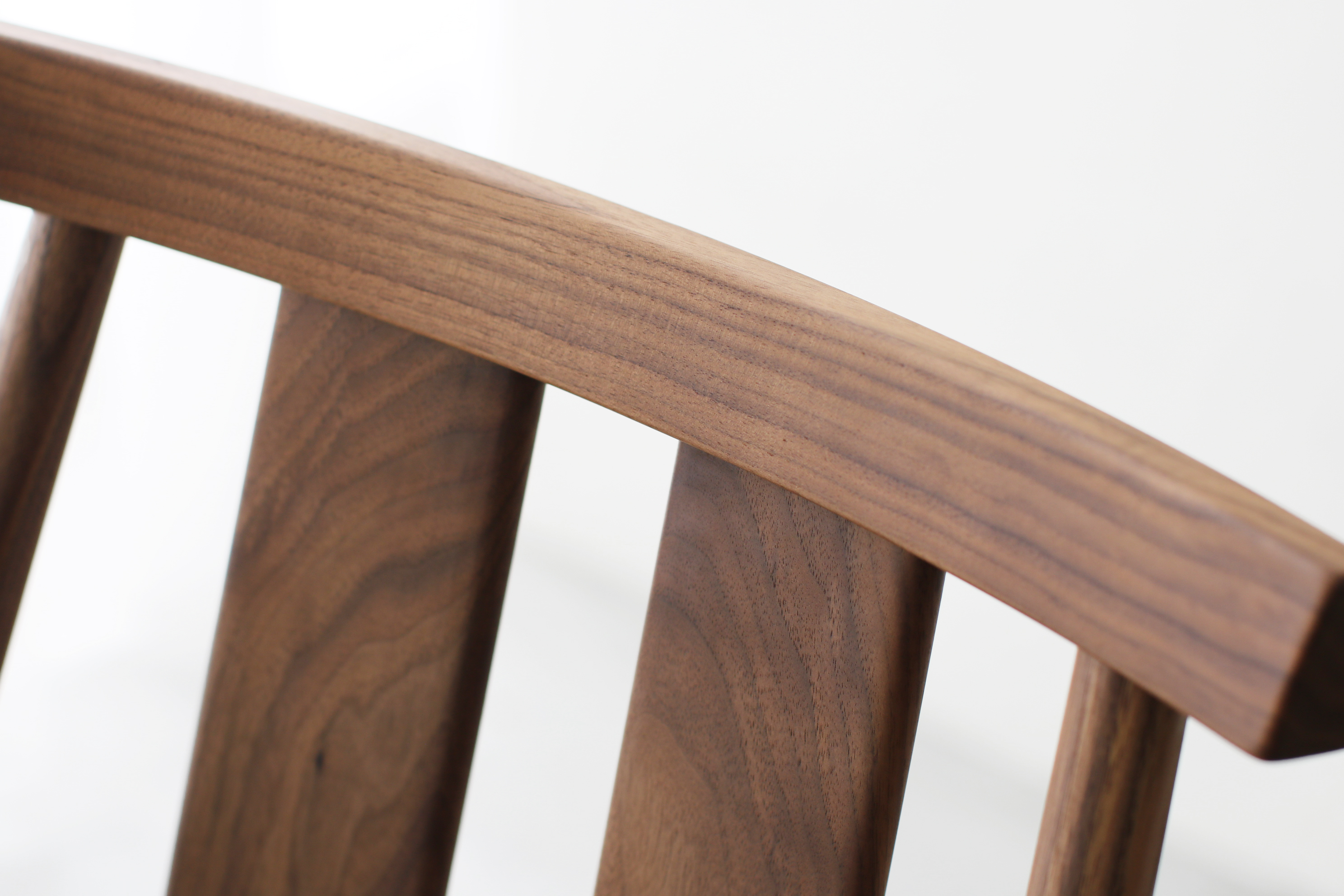 座面にくぼみをつけていますので、板座でも優しい座り心地です。体をしっかりと預けられる高さのある背もたれで、長時間座っても疲れにくく、快適に過ごしていただけます。