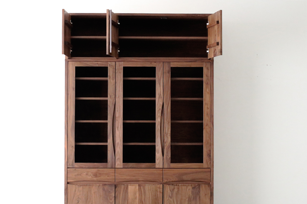 上棚があることで通常の食器棚より多くの食器や調理器具などを収納できます。