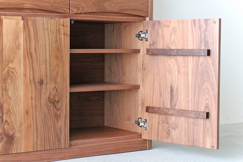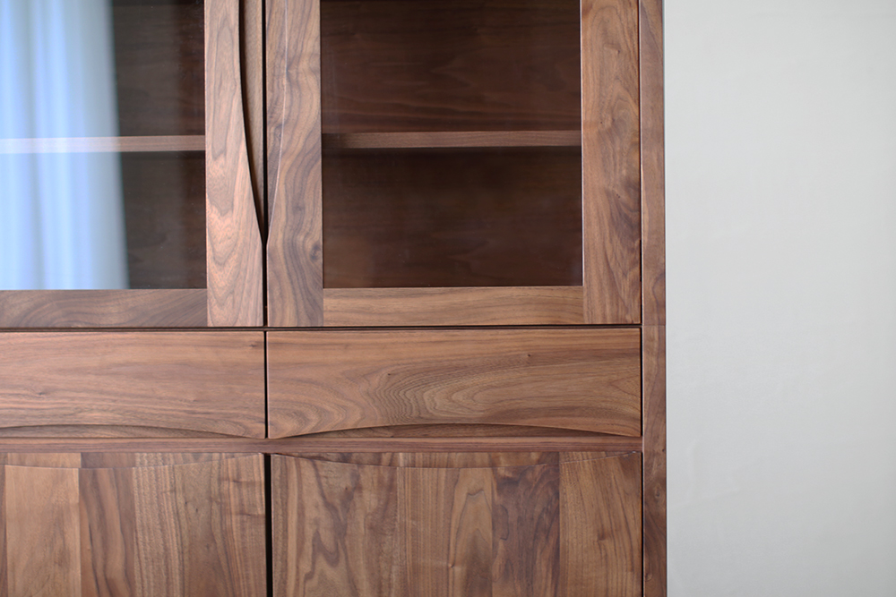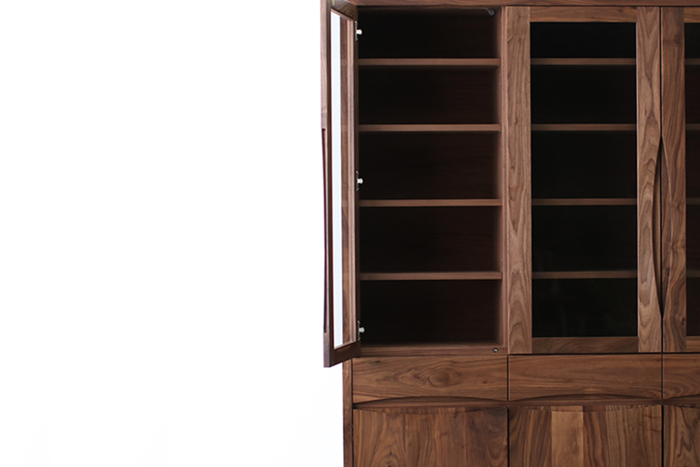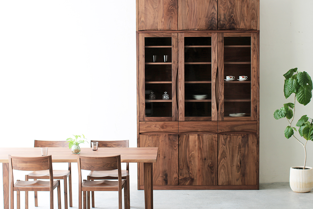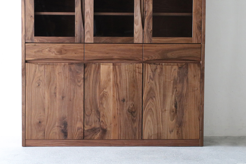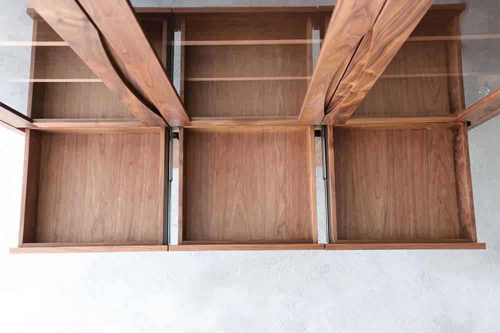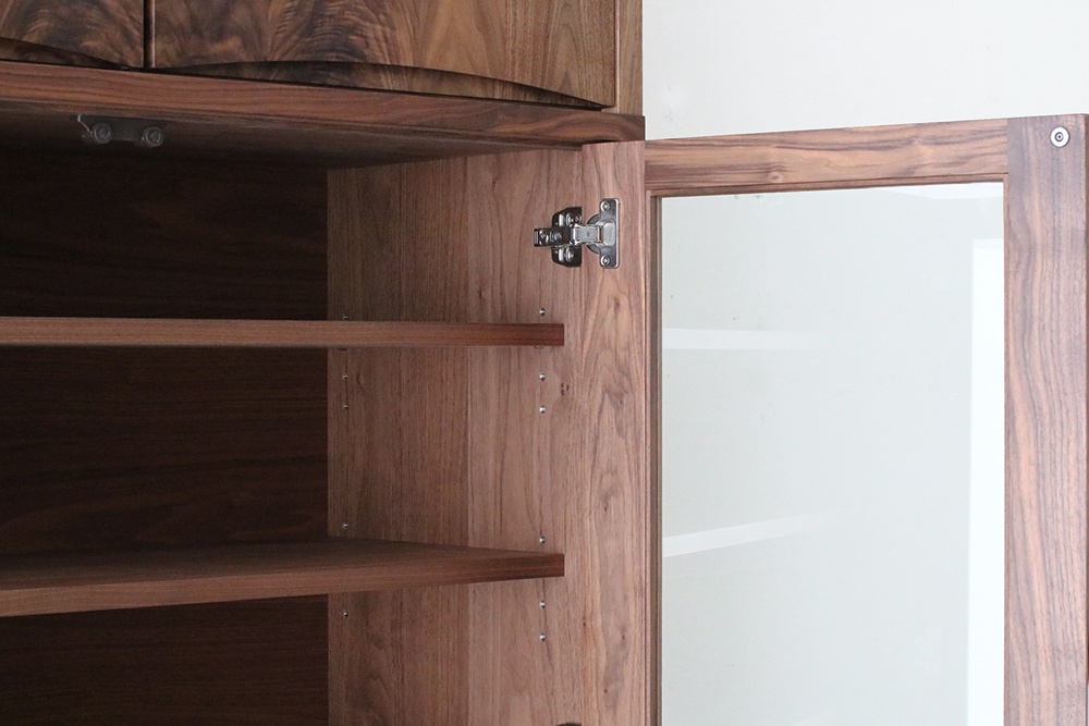 | 仕 様 | ガラス開戸・引き出し前板:ウォールナット無垢材