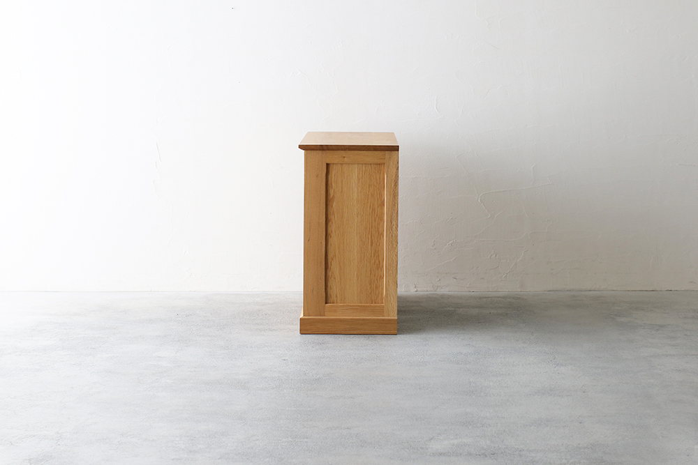 | 仕 様 | 前板:オーク無垢材 側板:オーク無垢材・オーク突板材 引き出し内部:桐材 棚板:オーク突板材 |