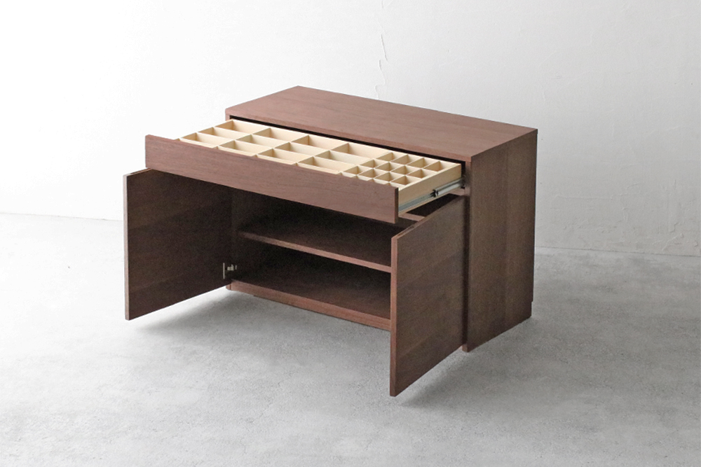 | 仕 様 | 天板・前板・側板:ウォールナット突板材 引き出し内部:シナ材 |