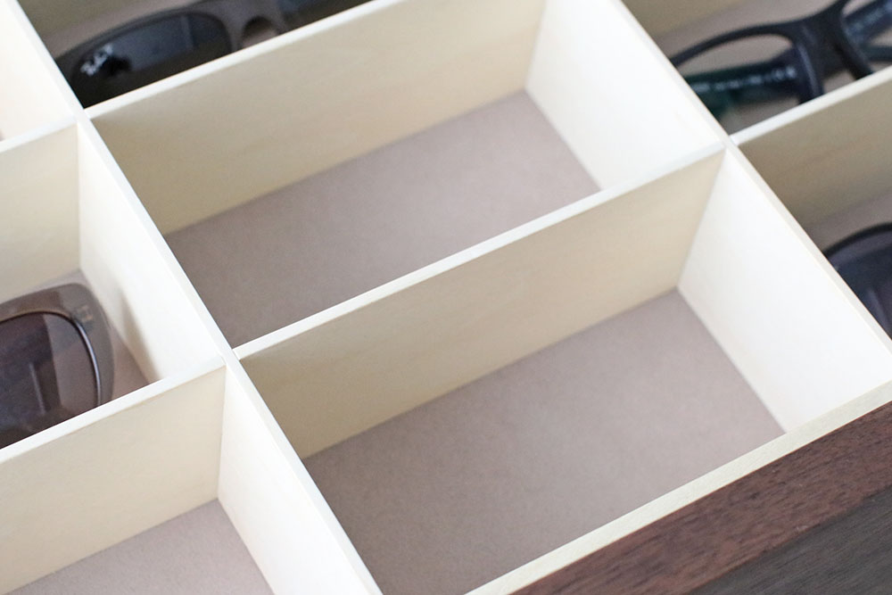 引き出し内部は、サングラスや腕時計がそれぞれ16個ずつ収納できます。
