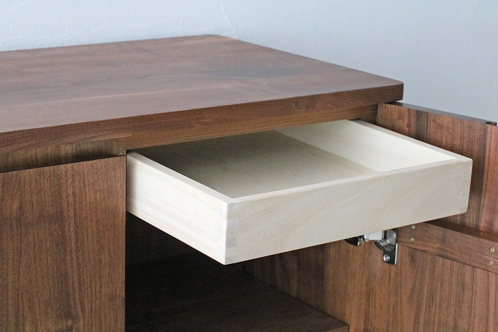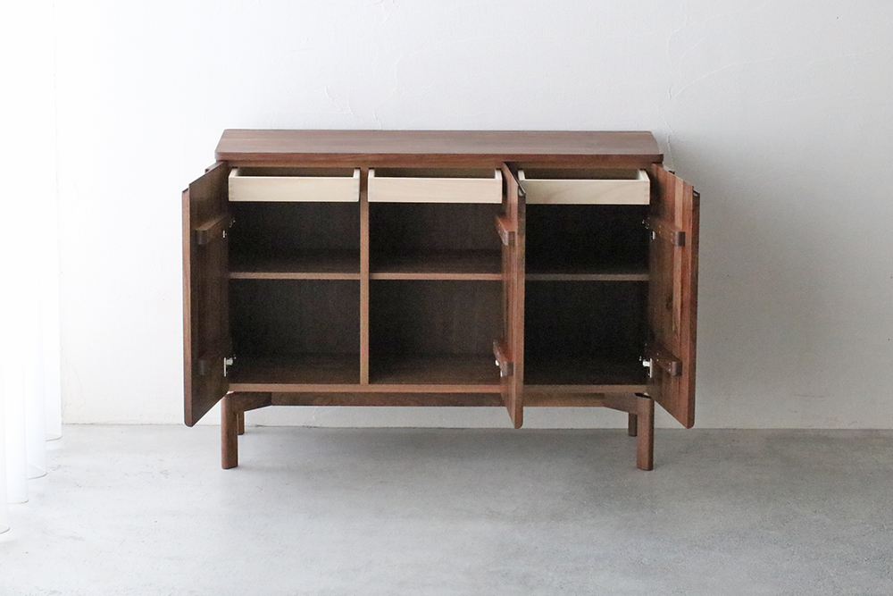| 仕 様 | 天板・側板・前板・脚:ウォールナット無垢材 引き出し内部:桐材 |
