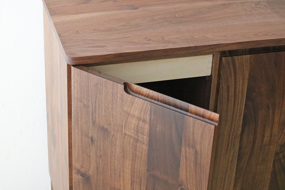 角に丸みを持たせ、持ち手も前板上部に削り込まれているのでスッキリと見えます。