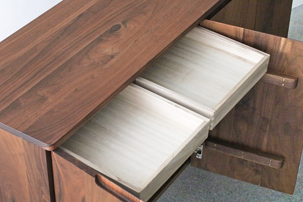 | 素 材 | ウォールナット材 引き出し内部:桐材 ※3種類からお選びいただけます。 ウォールナット材・ブラックチェリー材・オーク材 |