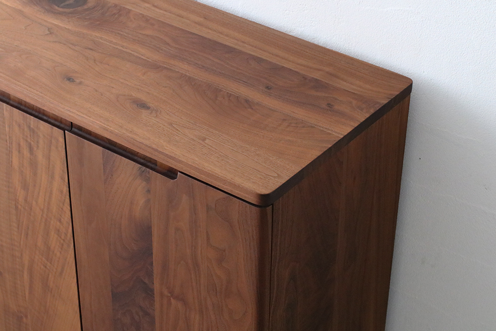 角に丸みを持たせ、持ち手も前板上部に削り込まれているのでスッキリと見えます。