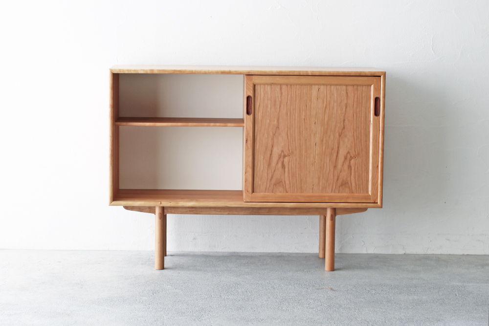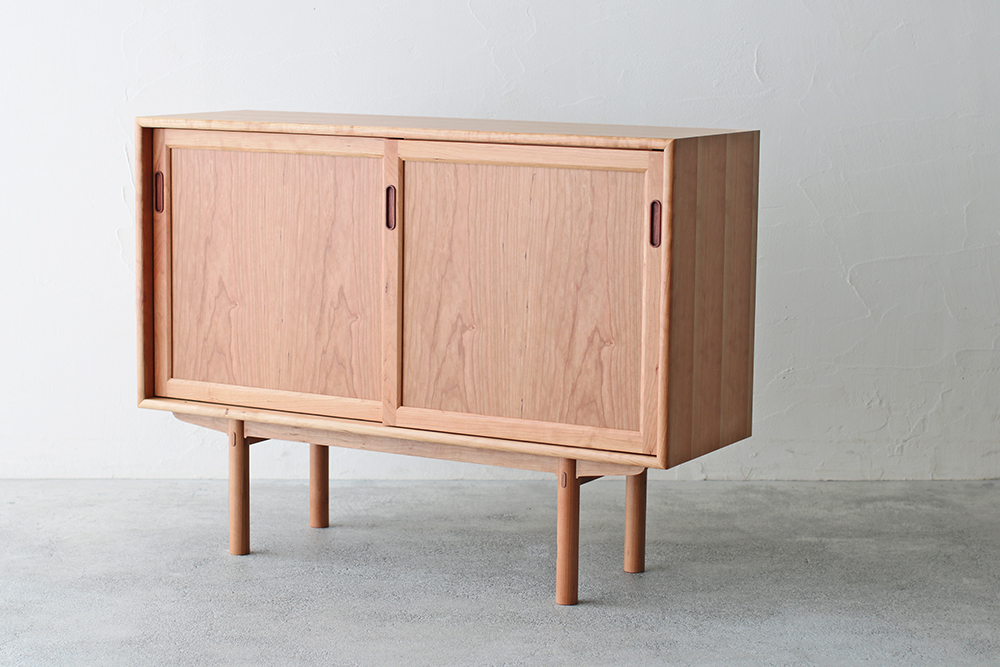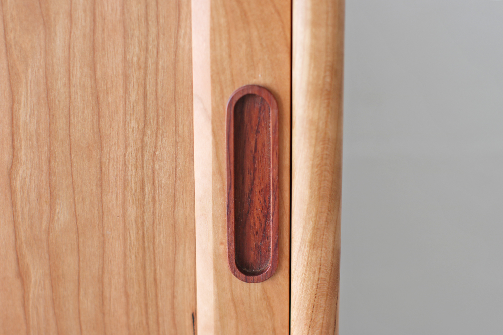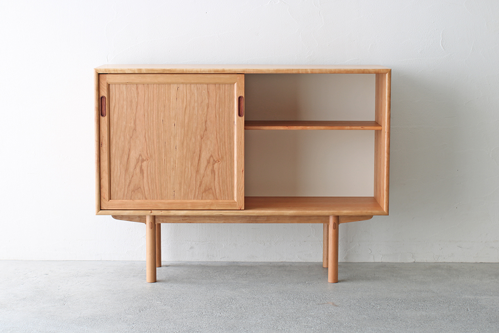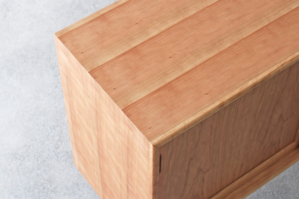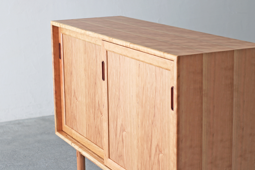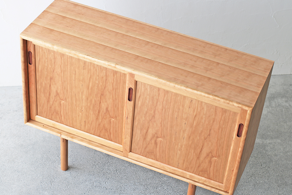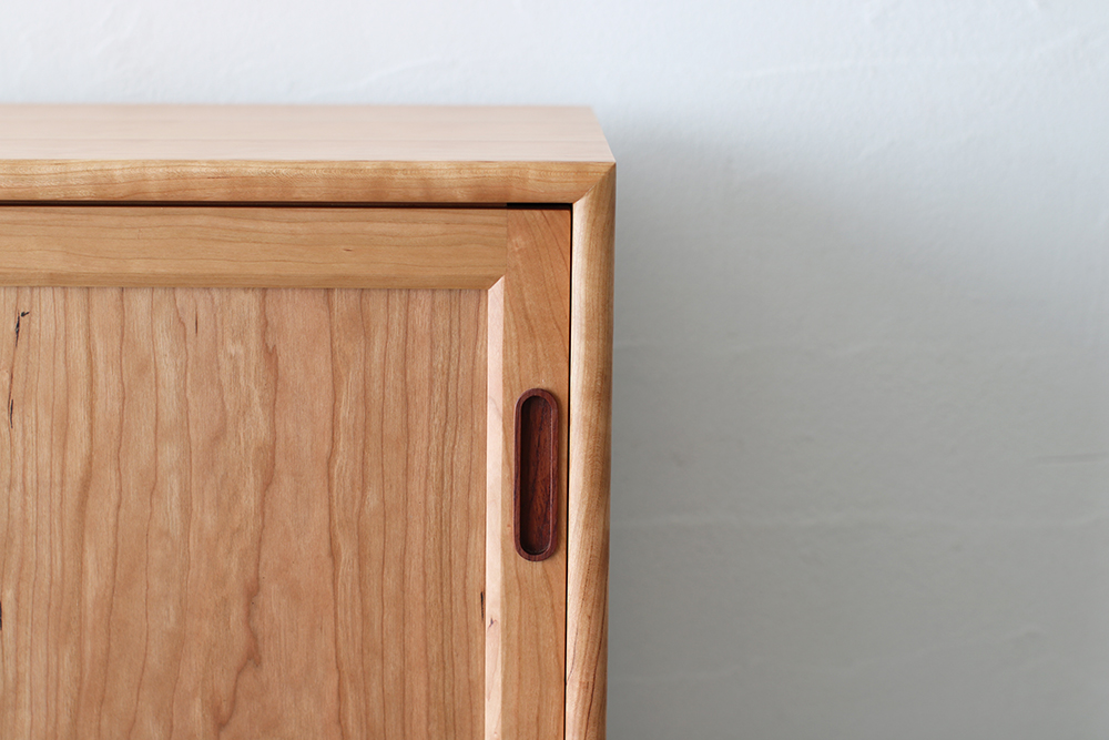 | 素 材 | ブラックチェリー材 ※3種類からお選びいただけます。 ウォールナット材・ブラックチェリー材・オーク材 引き手:ブビンガ材 ※引き手は4種類からお選びいただけます。 オーク材・ケヤキ材・ブビンガ材・ウォールナット材 |