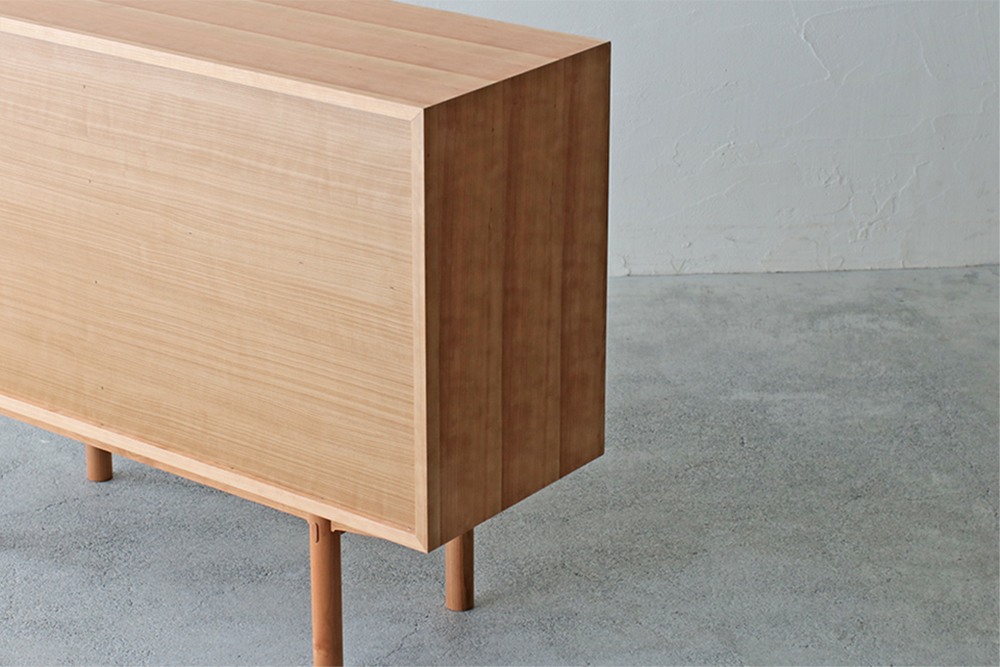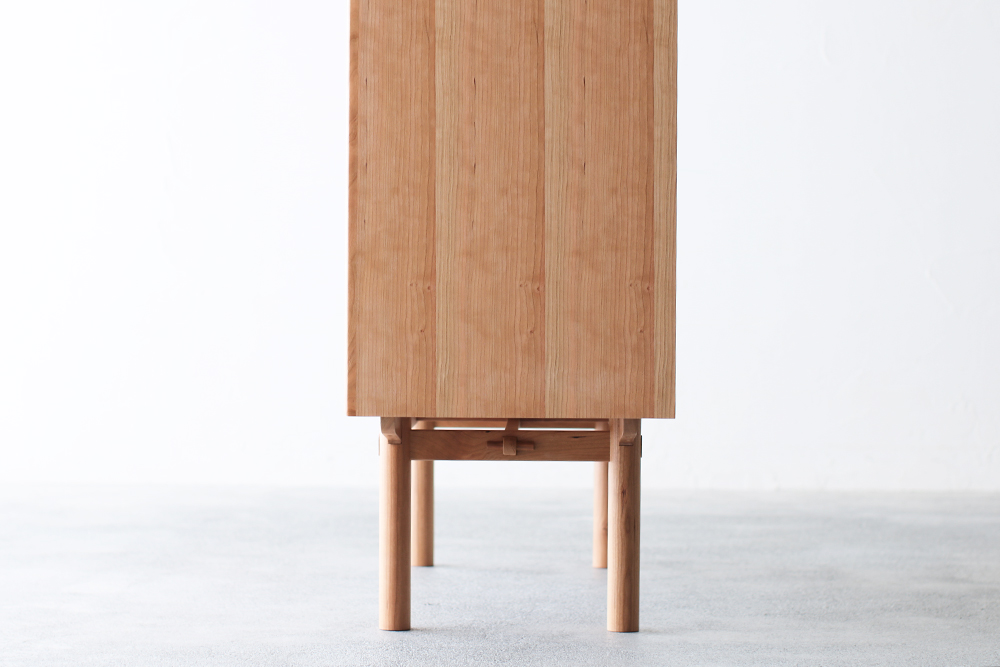 | 仕 様 | 天板・側板:ブラックチェリー突板材 前板:ブラックチェリー無垢材・ブラックチェリー突板材 引き手:ブビンガ無垢材 脚:ブラックチェリー無垢材 |