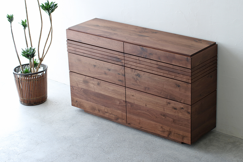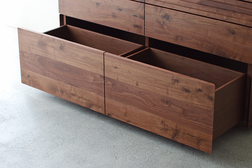 | 仕 様 | 天板・前板・側板:ウォールナット無垢材 引出し内部:シナ材 |