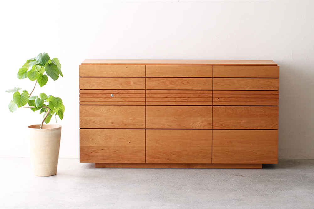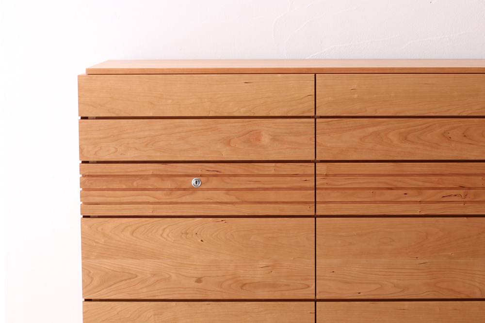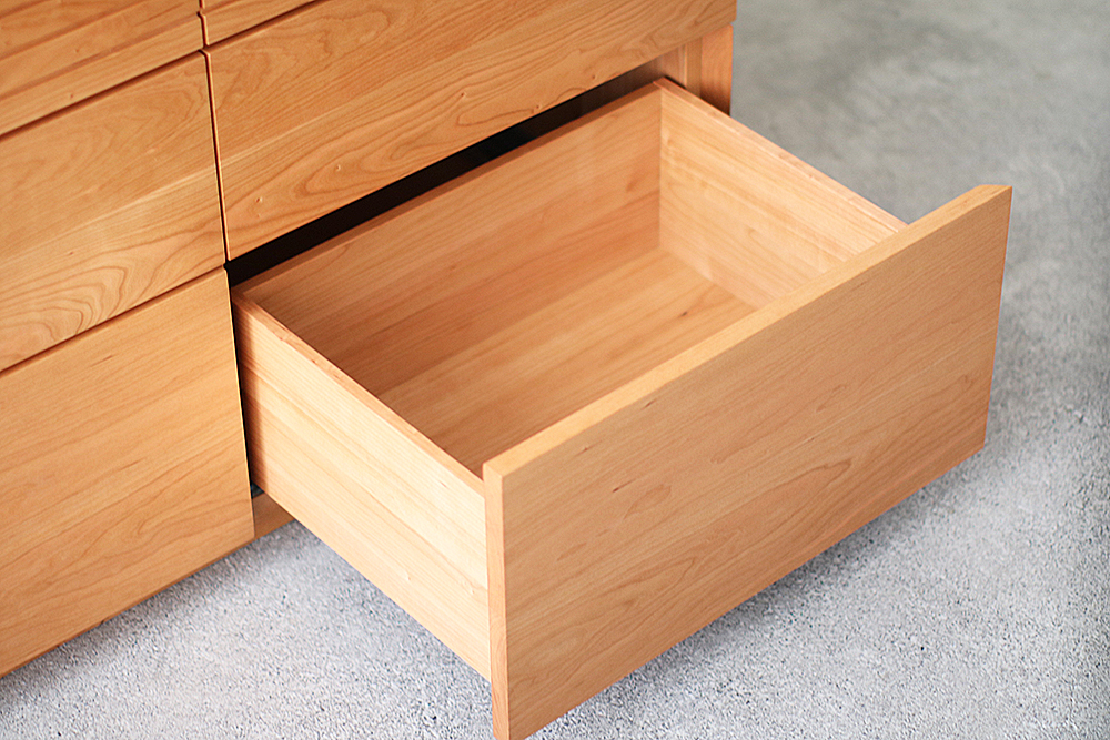 引き出しの数を増やし、引き出し内部の樹種をブラックチェリー材にしました