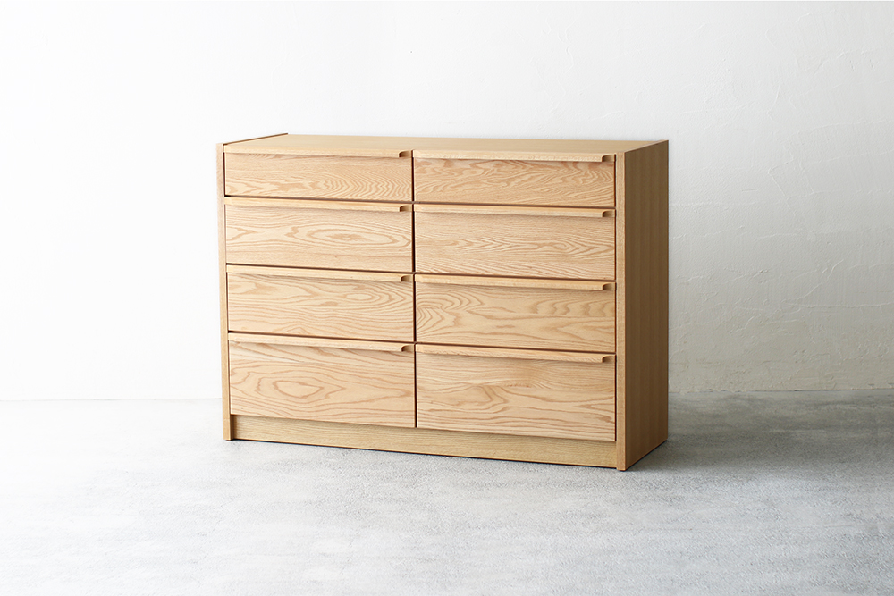 オーク材が生み出すナチュラルなデザインのローチェストです。