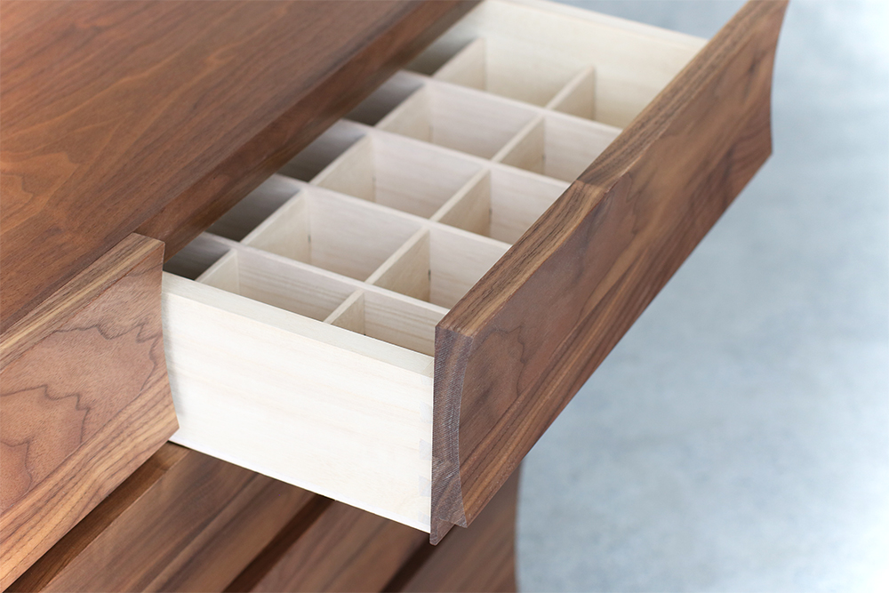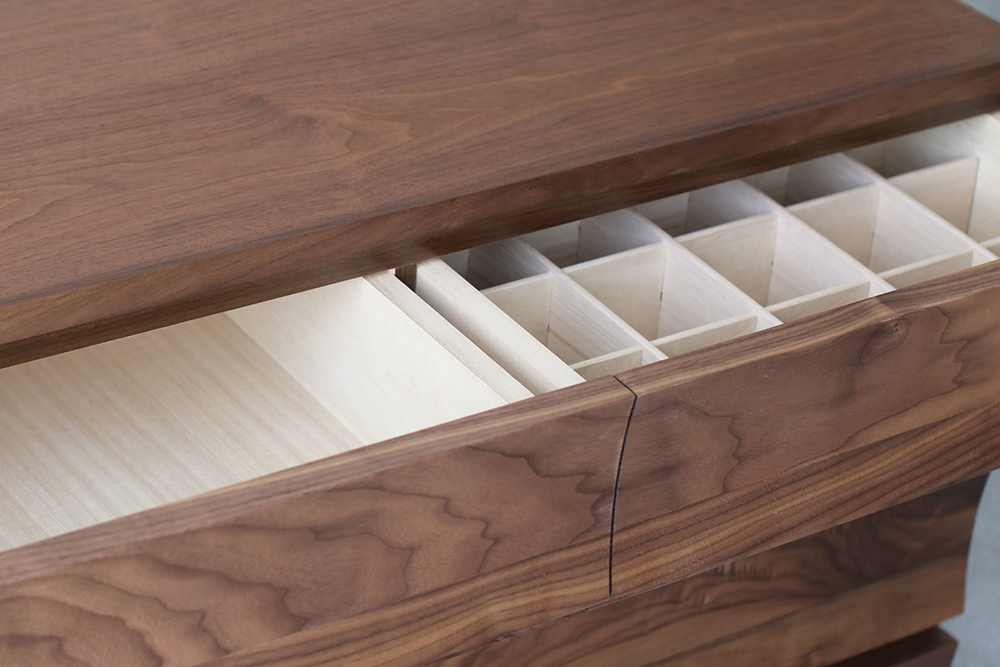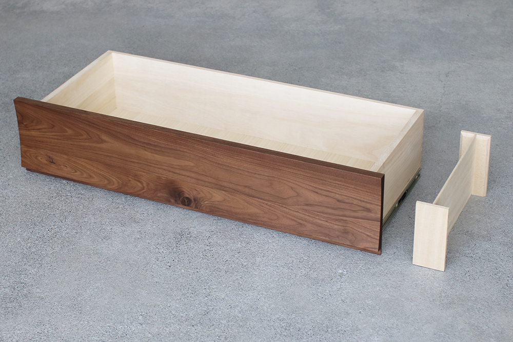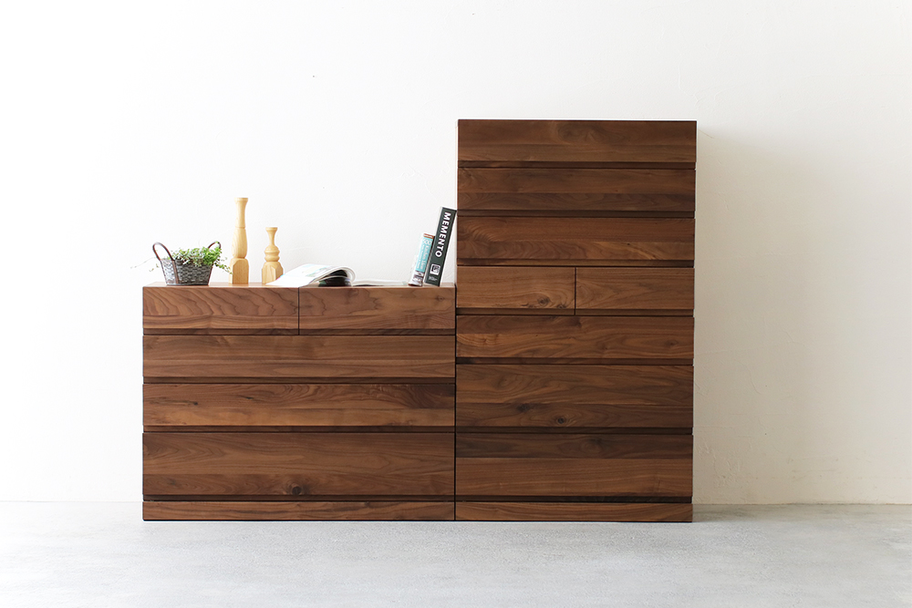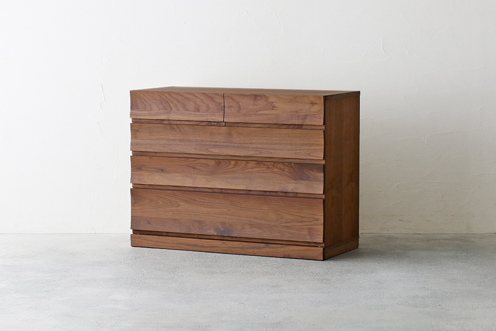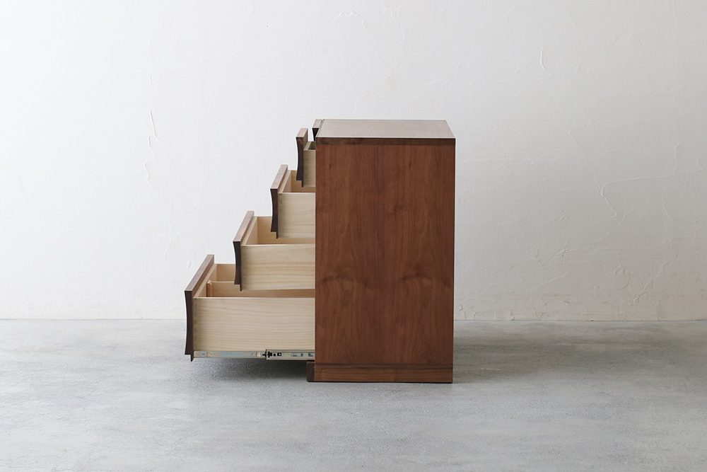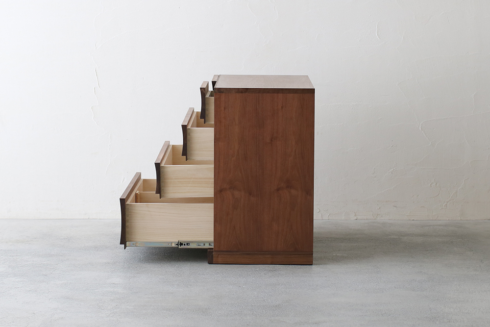 | 仕 様 | 前板:ウォールナット無垢材 天板・側板:ウォールナット突板材 引き出し内部:桐材 |