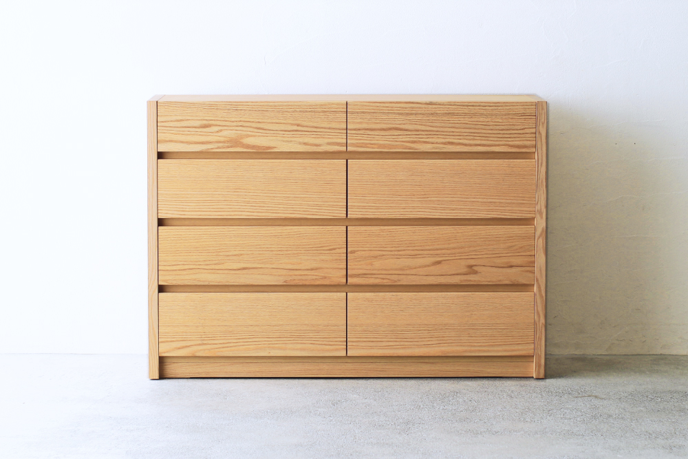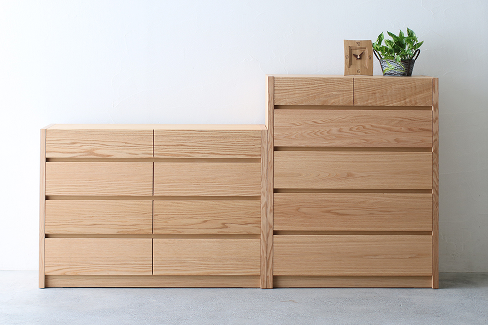 | 仕 様 | 前板:オーク無垢材 天板・側板・背板:オーク突き板材 引き出し内部:桐材 |